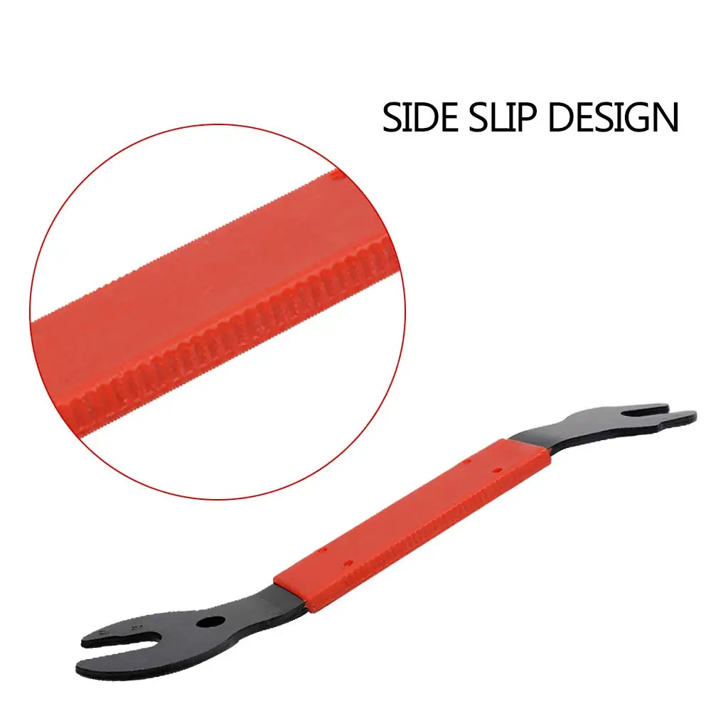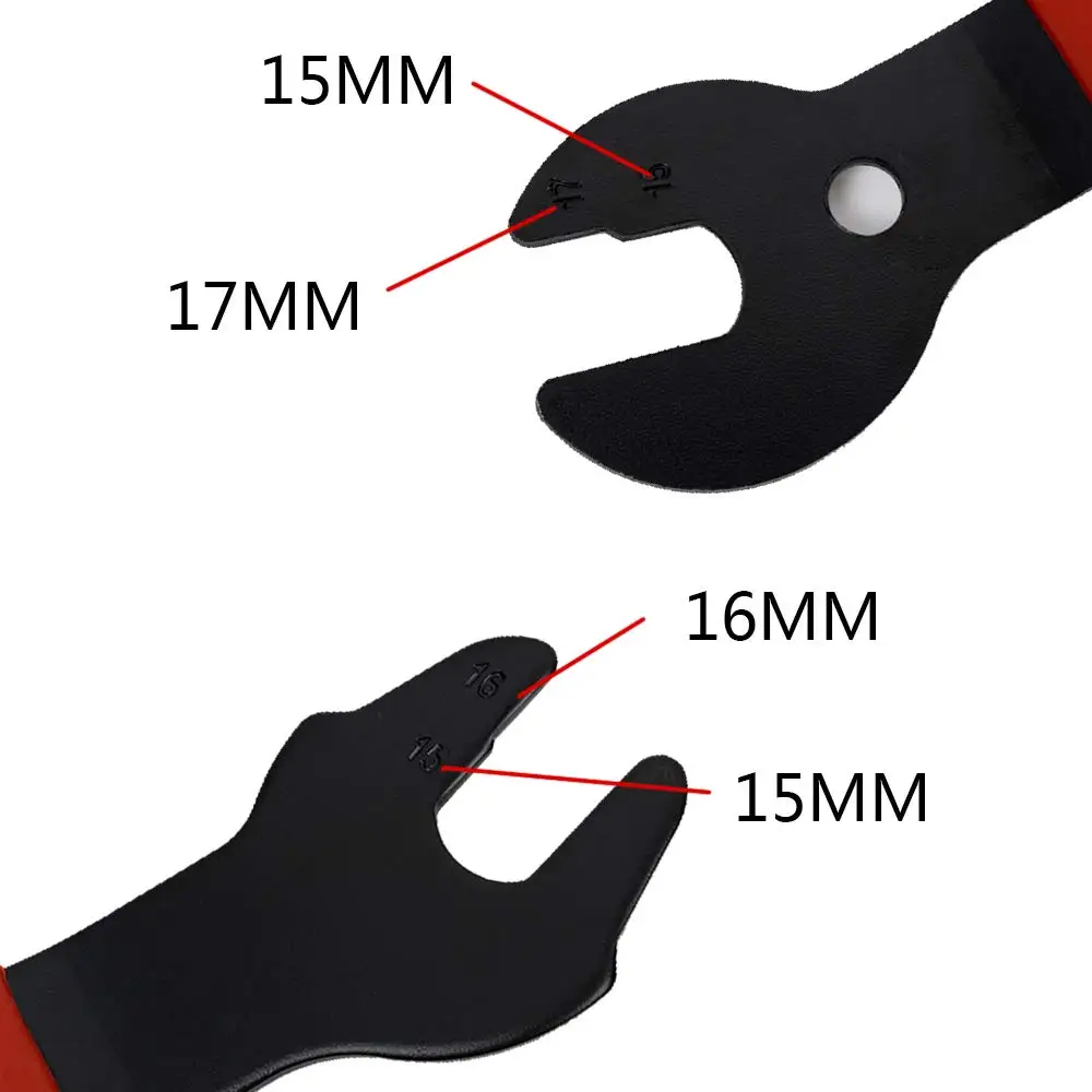 Педальный ключ разработан специально для велосипедной педали. С 3 различных спецификаций, 15/16/17 мм, двусторонний, работает как 3 ключ, дюймовый стандарт. Идеальное техническое обслуживание велосипеда и ремонт. Разработанный с длинной ручкой и противоскользящим захватом, он помогает увеличить момент силы для легко держать, и сохранить руки и костяшки от царапин.
