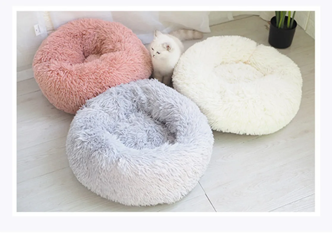 Моющиеся плюшевые игрушки для домашних питомцев в классическом стиле супер мягкая кошка собака кровать с плюшевым ворсом внутри Круглый кошки спальные коврики зима теплая собака щенок подушки Зефир Кровать 40/50/60/70 см