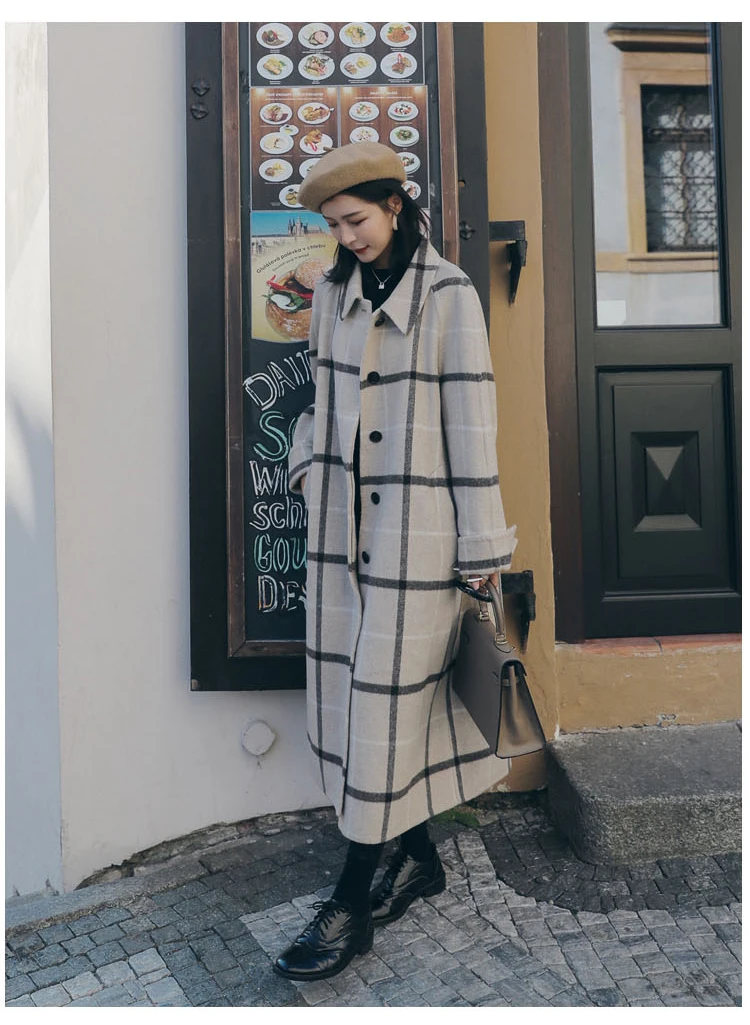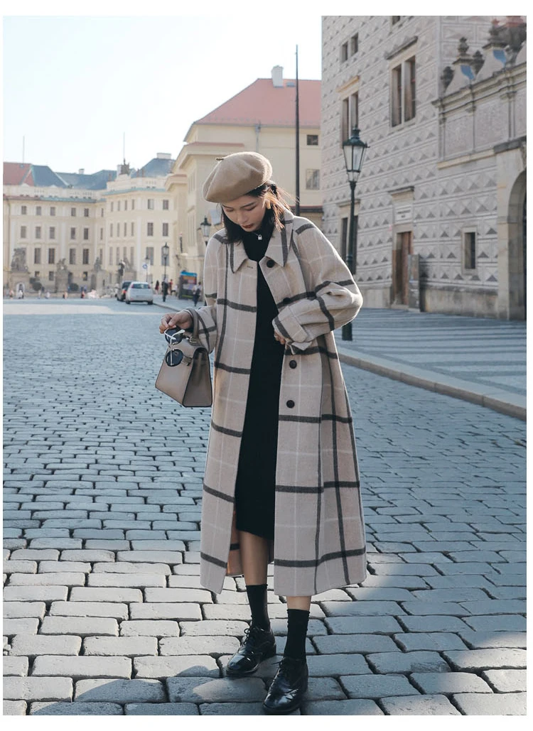 Женское шерстяное пальто с отложным воротником винтажное длинное длинным