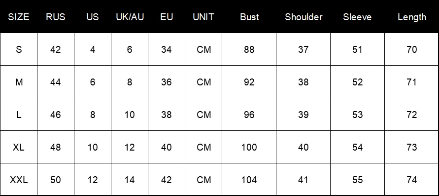 Примечание: 1. Азиатские размеры на 1-2 размера меньше, чем европейские и американские. Выберите больший размер, если ваш размер между двумя размерами. Возможны отклонения в 2-3 см вследствие измерений вручную. 2. Пожалуйста, внимательно проверьте таблицу размеров перед покупкой товара. Если вы не знаете, как выбрать размер, пожалуйста, свяжитесь с нашей службой поддержки клиентов. 3. Как вы знаете, различные компьютеры отображают цвета по-разному, цвет фактического товара может незначительно отличаться от приведенных ниже изображений. --------------------------------------------------------------------------
