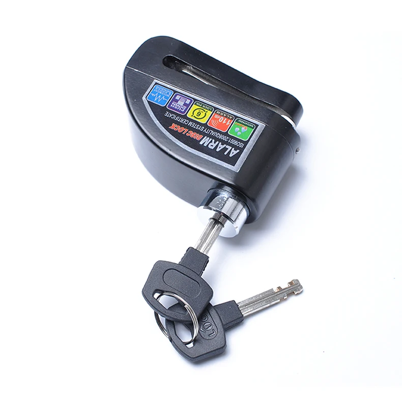Features: This is a security anti-theft lock universal for motorcycle, scooter, bicycle etc. It works by locking the disc brake, which helps to stop the movement of vehicles and keep the safety of vehicle. It is simple and convenient to operate. Just click the lock cylinder, it will be locked. It supports the warning alert function. There will be alarm sounds if the lock is shocked by someone. Made of premium metal, it is durable, waterproof and not easy to rust. Comes with a small spanner and two keys, so it is very economical. Specifications: Material: Metal Color: Red/Blue/Yellow/Silver Lock Size: 87 x 75 x 32mm Lock Pin:6mm Package Weight: approx. 330g Instructions: Press the key cylinder to lock with a "beep" sound, and then it puts on alert in 10 seconds accompany with a vibration and three "beep" sound. If the lock is shocked, another shake after 5 seconds will cause alarm, and hereafter continuous vibration can bring continuous alarm. No shake occurs within 10 seconds after the alarm, it will be on alert again. Battery Replacement: When replacing the battery, first unscrew the screws at the bottom of the lock, then remove the cover to replace the battery. Packaged: 1 x Lock 2 x Keys