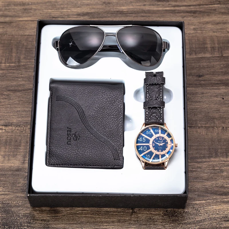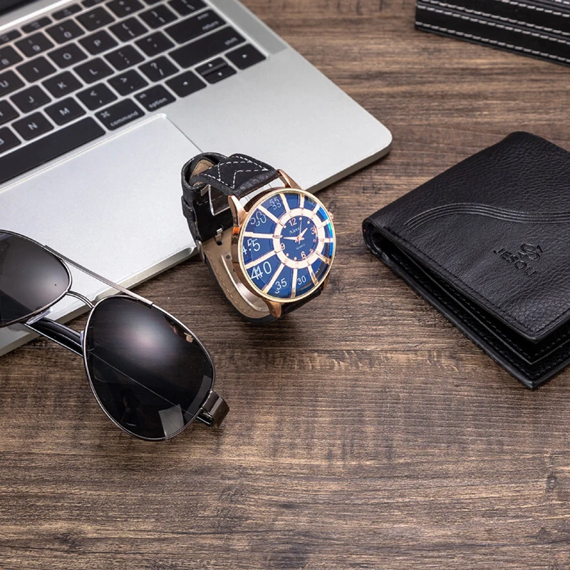 Мужские прямоугольные кварцевые часы с календарем и кожаным ремешком|Кварцевые
