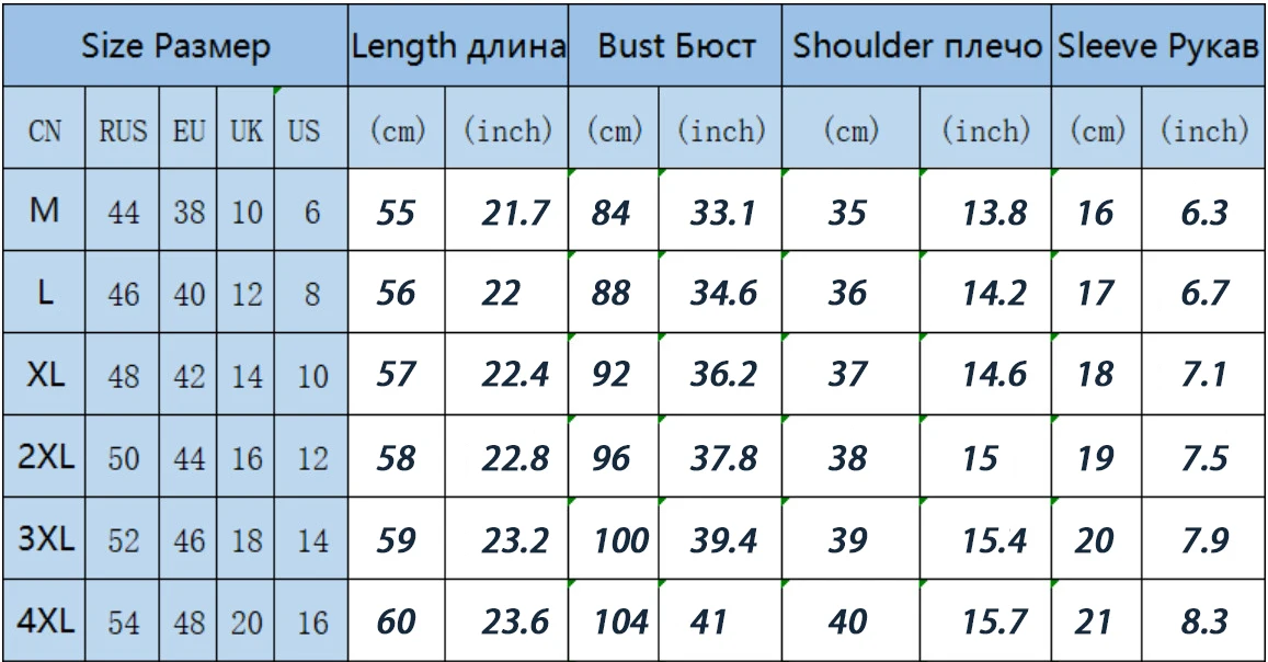 4XL плечо: 40 см бюст: 104 см рукав: 21 см длина: 60 см