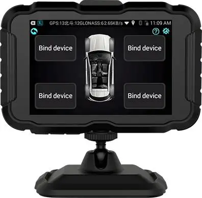 1 Host 2 Tire pressure sensor External(default)/Internal 3 Car bracket 4 Desktop stand 5 Power line 6 External tire installation kit(default) 7 Front camera 8 Rear view cam 9 manual