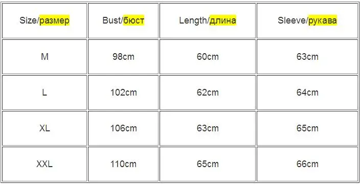 M Обхват груди: 98 см Длина рукава: 63 см Длина: 60 см