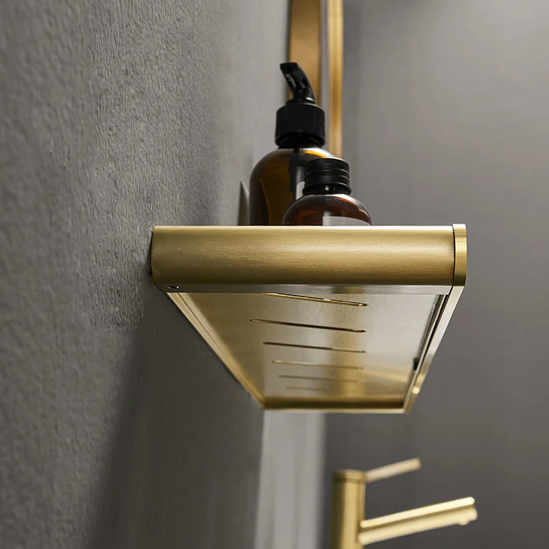 Матовая Золотая полка для ванной комнаты, алюминиевая стойка для душа, настенное зеркало для душевой комнаты, передняя рамка