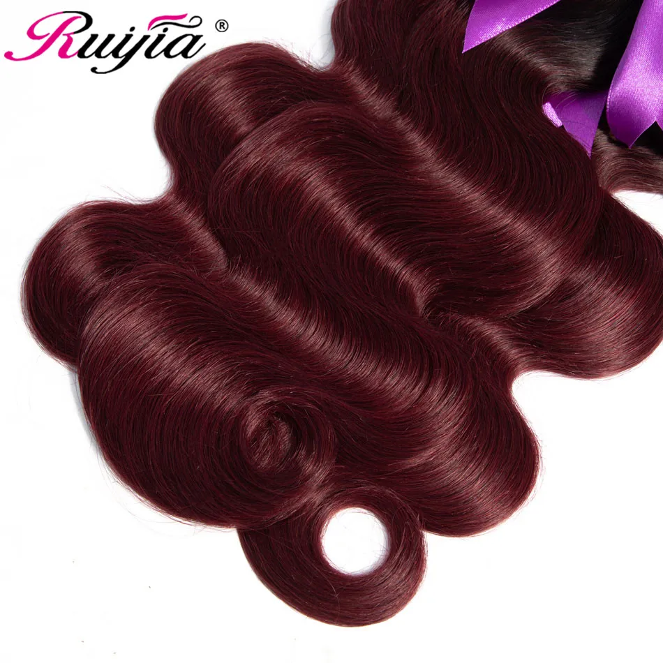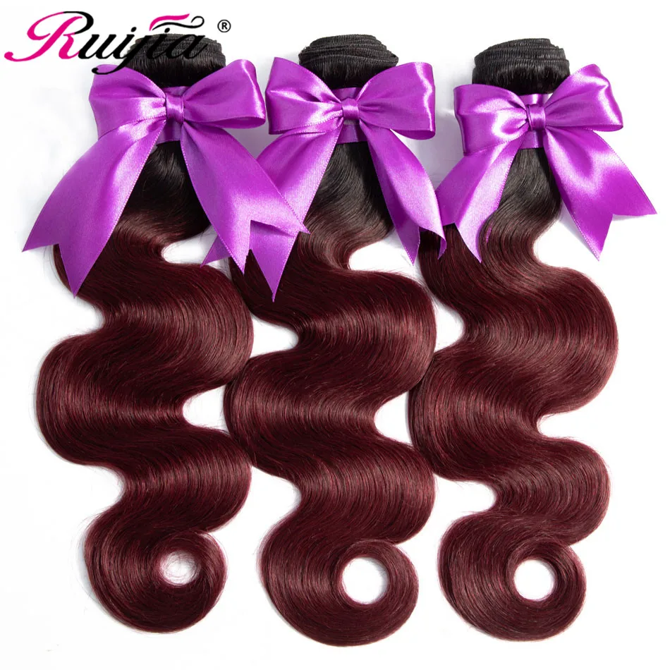 Омбре волнистые бразильские пряди T1B бордовый цвет ed человеческие волосы 3 4 пряди Красный Омбре пряди волос Бразильский цвет волос плетение