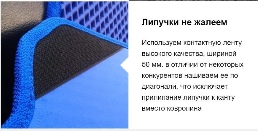 ОКАНТОВКА (ПРОШИВКА ПО КРАЯМ): плотный ременной материал, не выгорает, практически не впитывает воду и надежно защищает края ковриков