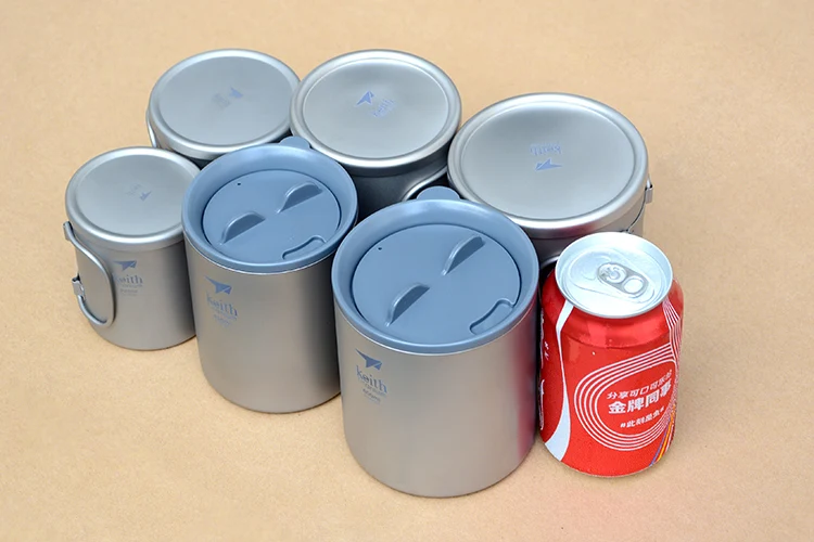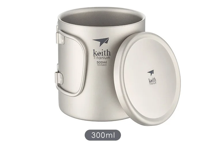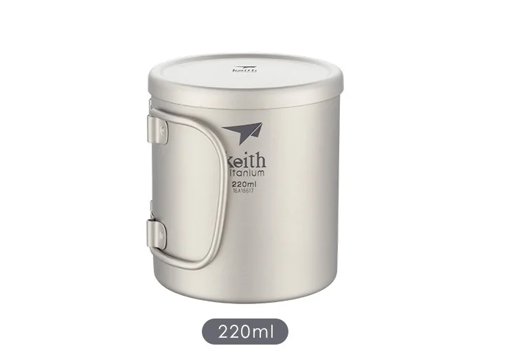 Keith 220 мл-600 мл, двойная Изолированная чашка, чистые кружки из титана С складными ручками и титановыми крышками Поверхность: пескоструйная обработка