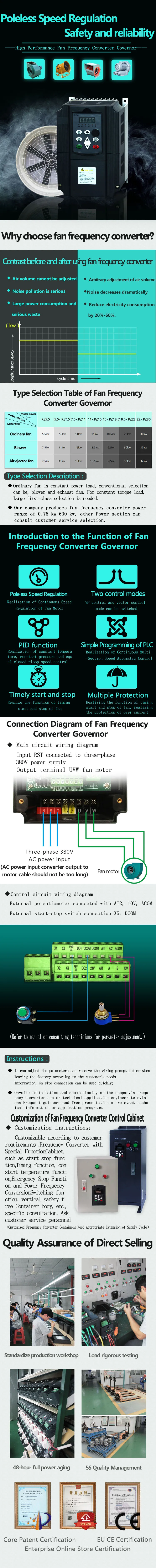 1.Output Power:7.5kw/11kw 2.Rated current:16A/25A 2.Rated Frequency :50hz/60hz 3.Output Frequency Range:0~650Hz 4.Input Voltage Range:Three phase (3 phase) 380V±15% 5.Output Voltage Range:3 phase 380V±15% 6.Control way: Open loop vector control(SVC) V/F control 7.Starting Torque: G type machine:0.5Hz/150%( SVC) 8.Main function: Control and adjust the speed of the ac motor