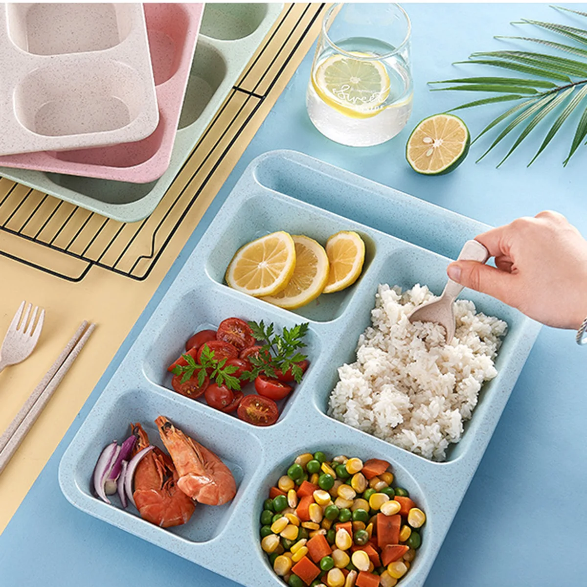 [6 отделений]: три небольших верхних отделения, два больших нижних отсека и держатель для столовых приборов сбоку, эффективно Избегайте запоров пищи