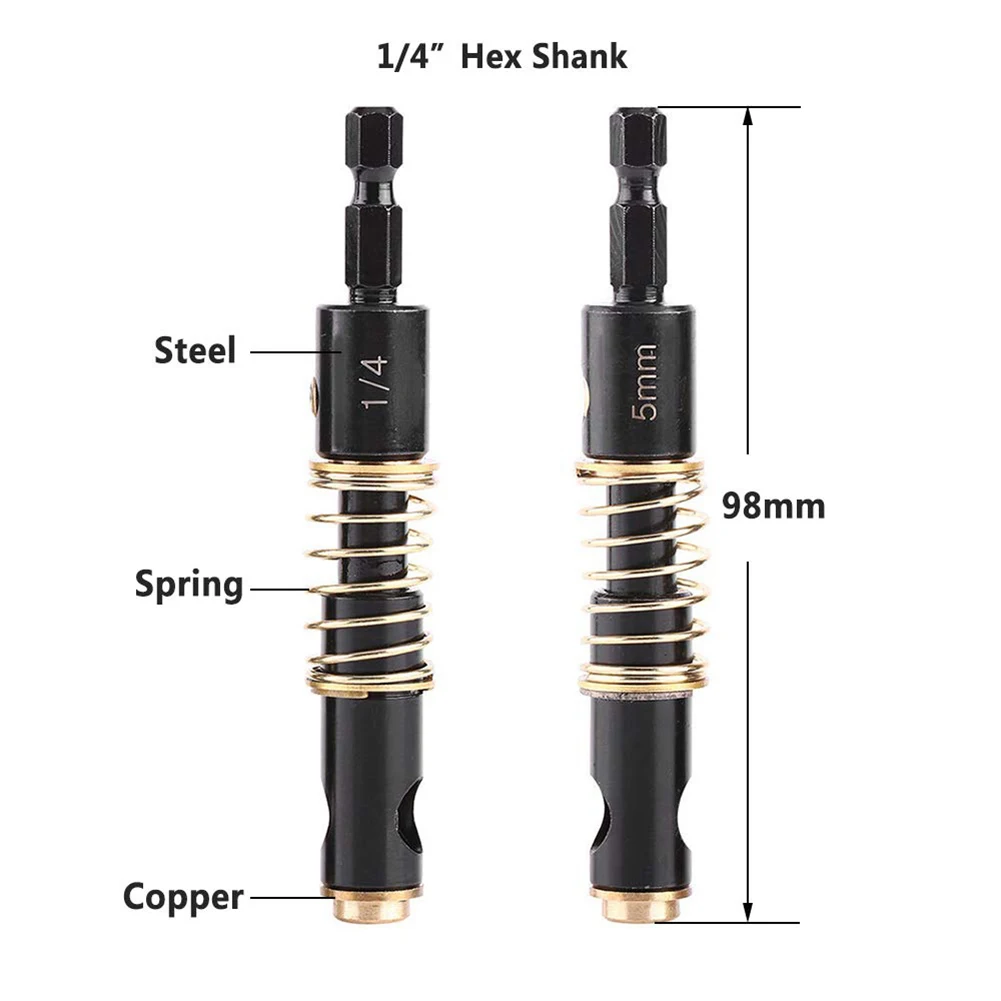-Пружинная направляющая центрирует встроенный бит в отверстие дверного шарнира, шарнира шкафа, кронштейна или оборудования, где требуется центральное отверстие.