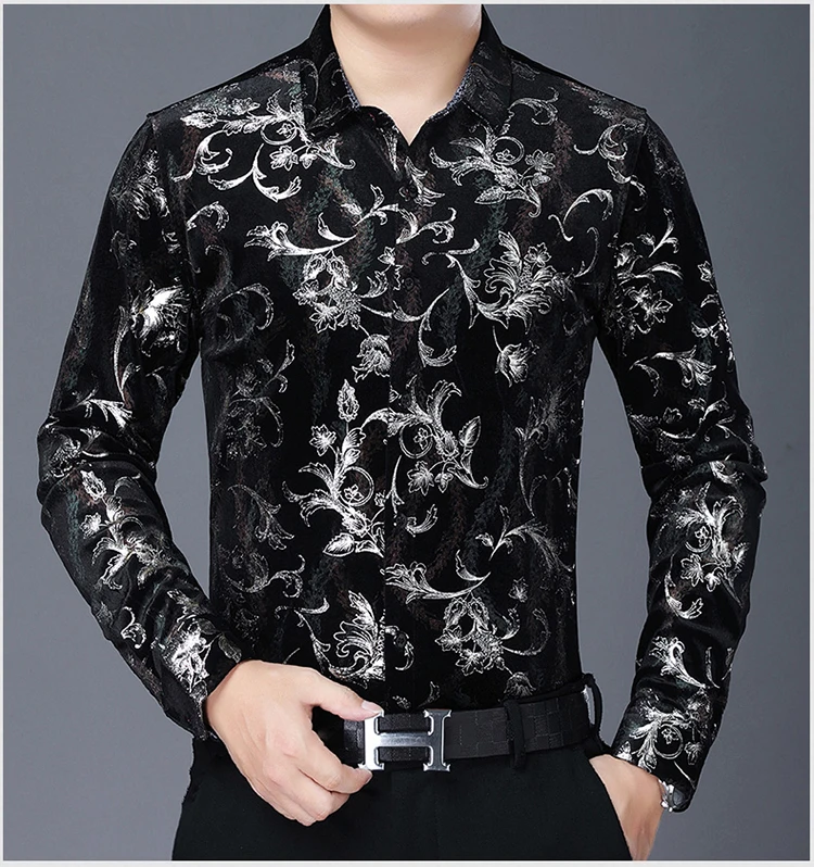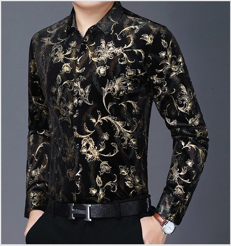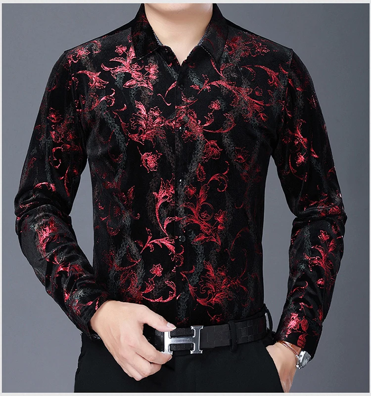 Золотые блестящие красные велюровые фланелевые рубашки, стрейчевая бархатная одежда большого размера, зимнее теплое модное платье для мужа, бордовая Роскошная блузка