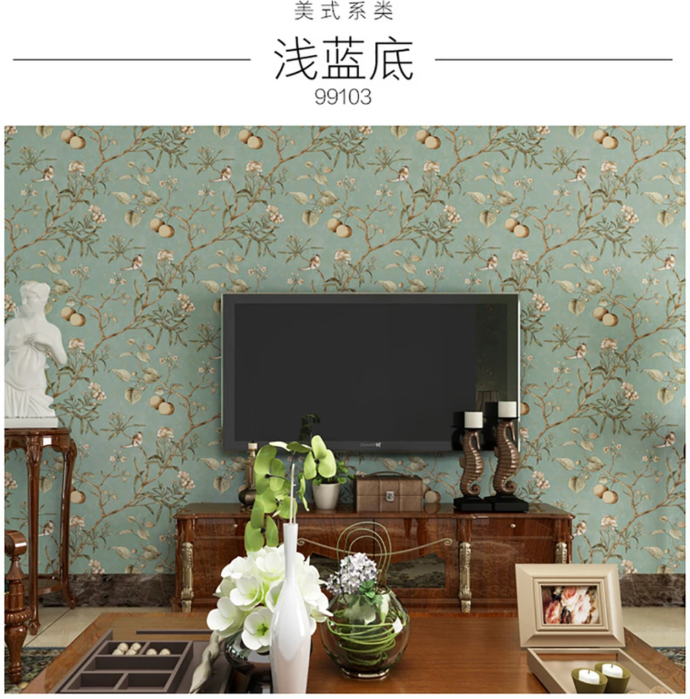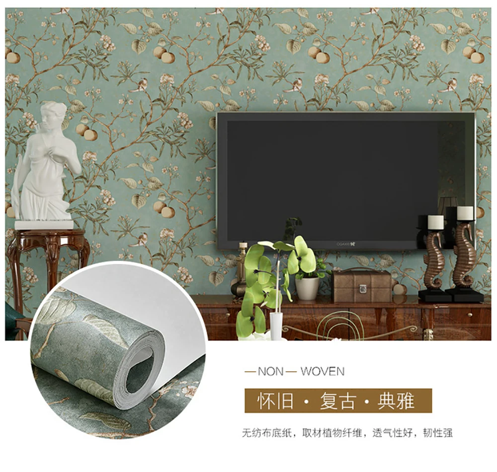 Антикварные обои с цветочным рисунком птицы, яблони, спальни, гостиной, нетканые обои в сельской местности, обои с принтом Y82