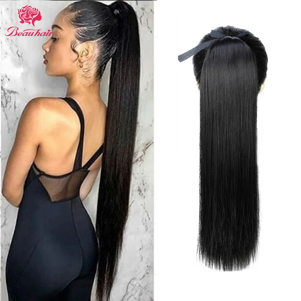 Бразильские человеческие волосы прямой хвост шелковистые прямые настоящие модели шоу, естественный цвет и цвет 2 конский хвост для вашей красоты