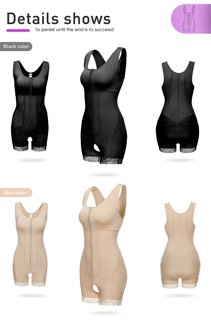 Черный послеродовой боди с застежкой-молнией и контролем живота, бесшовный боди для всего тела, пояс для коррекции приклада, женские биндеры и Шейперы 6XL