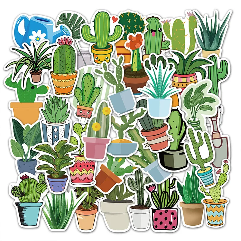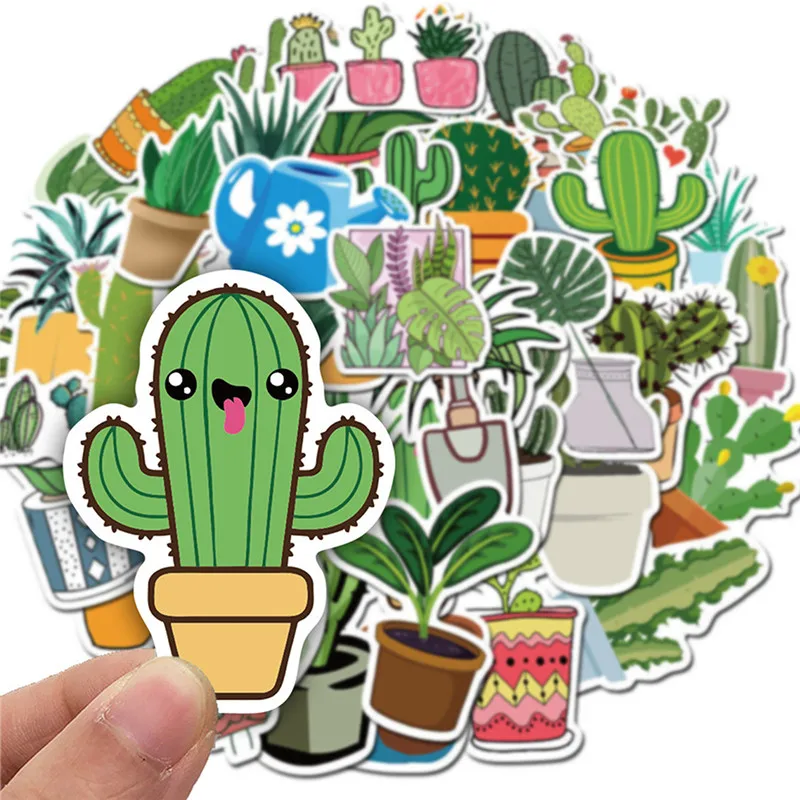 Наклейки для ноутбука, водонепроницаемый милый кактус бонсай виниловые наклейки-граффити для бутылки воды, телефона, гитары, чемодана