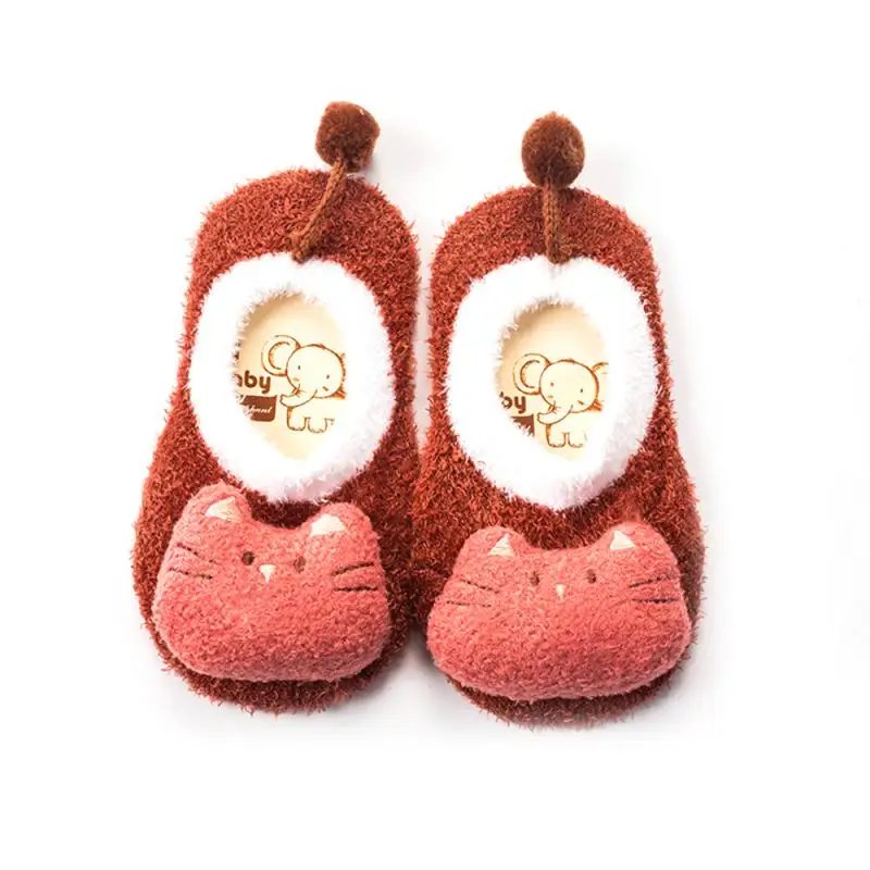 Новые зимние носки для малышей Нескользящие От 0 до 5 лет мягкие тапочки из бархата кораллового цвета с рисунком животных для мальчиков и девочек домашние тапочки