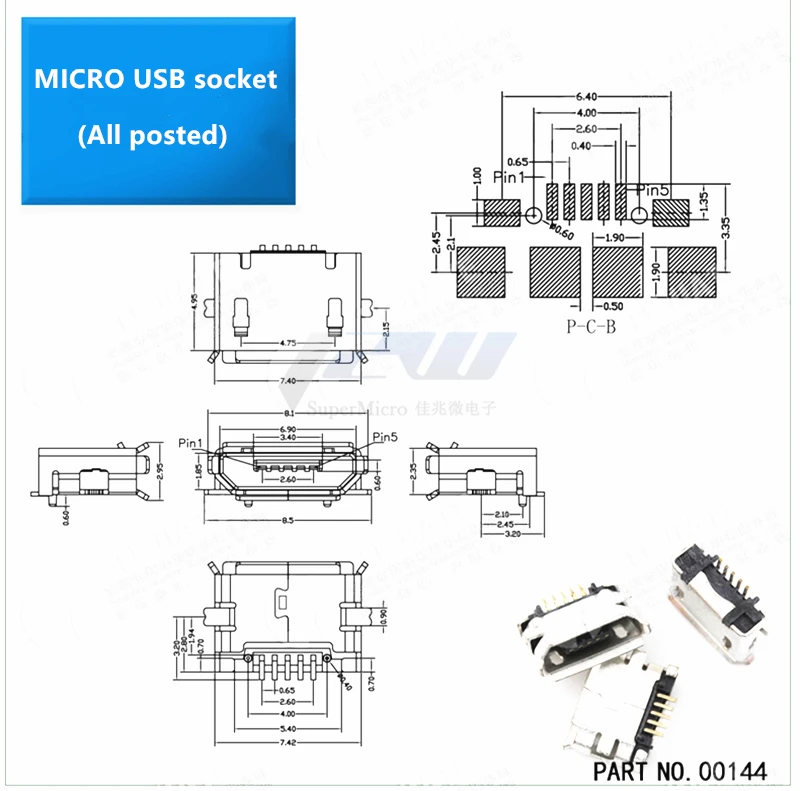 20 шт./лот, медный разъем MicroUSB MK5P, Mike 5P, MINIUSB, гнездо, 5 футов, патч