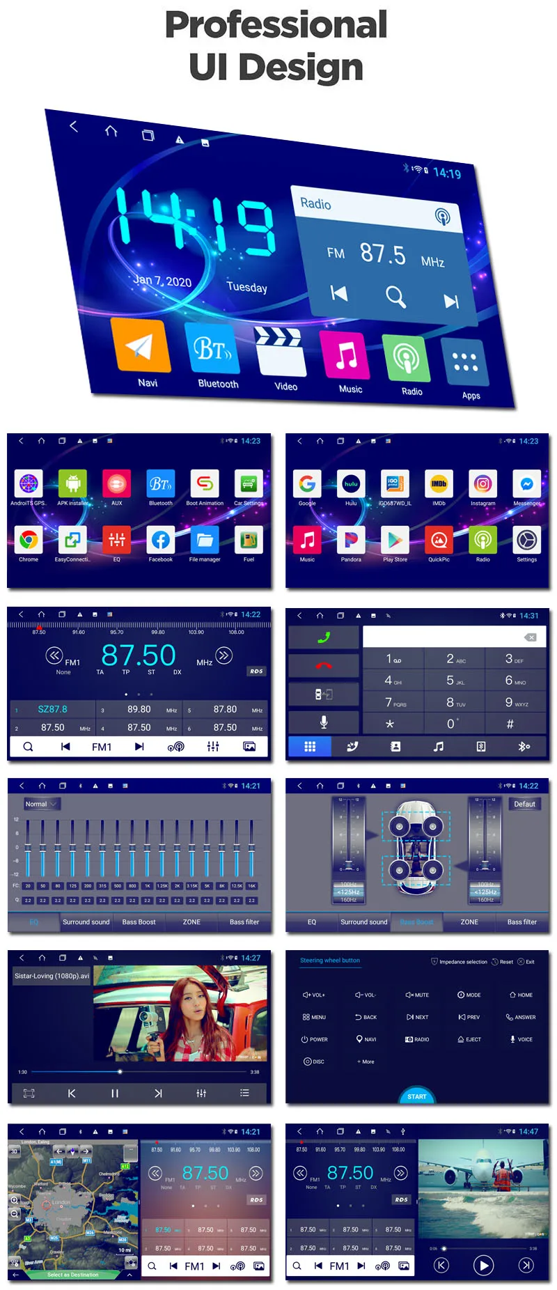 1. Система: Android 9. 2. Встроенный 3/4G и WIFI модуль, вы можете подключить sim-карту, чтобы посетить интернет напрямую. 3. Встроенный беспроводной CarPlay, Поддержка Android и iPhone Mirror Link. 4. Встроенный 32-эквалайзер DSP, чипы усилителя: TDA7851. 5. Операционная память (RAM) + память (ROM): 4G + 64G. 6. Стандартный IPS + 2.5D экран. 7. Модель процессора: Allwinner 9853 (8 ядер). 8. Поддерживает двойной (сплит) экран большинства APKs. 9. Радио тюнер: FM,AM,RDS. 10. Поддержка задней камеры AHD. Пожалуйста, заказывайте онлайн напрямую, если у вас нет проблем! Мы отправим вашу посылку в течение 2-3 рабочих дней.