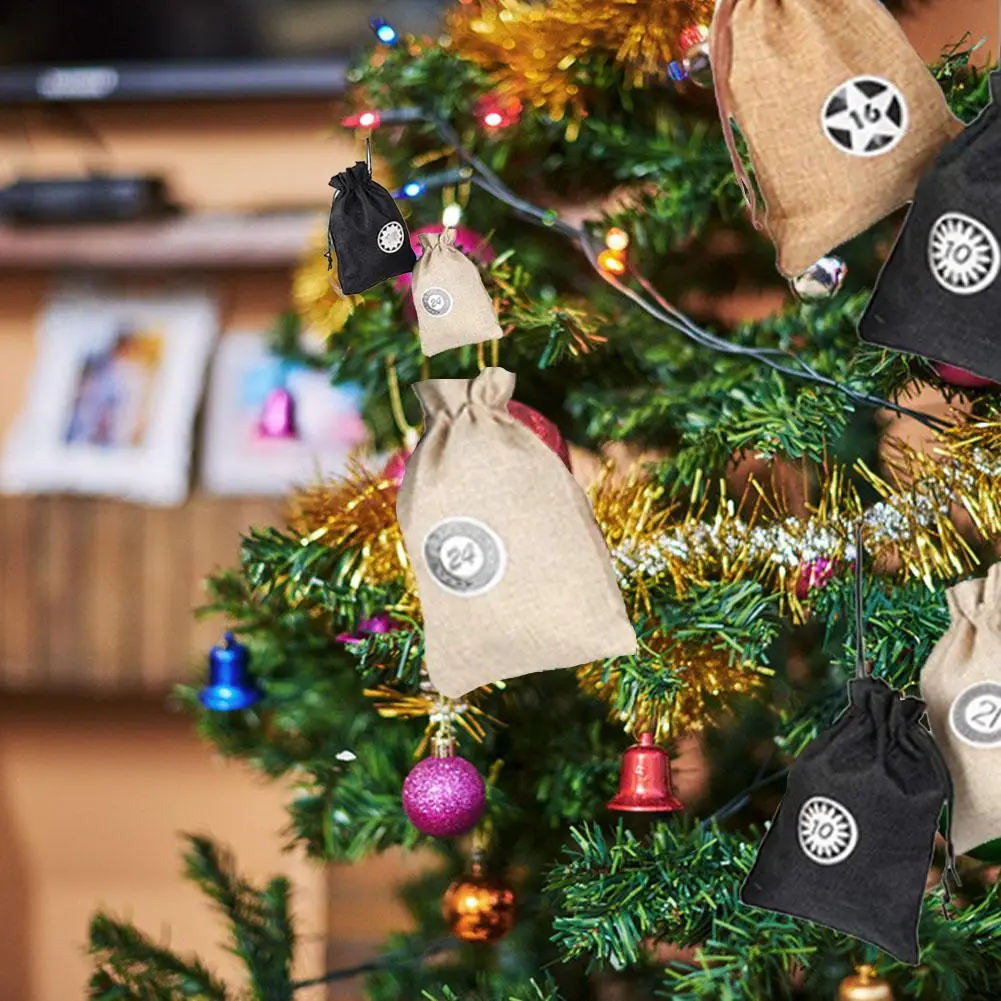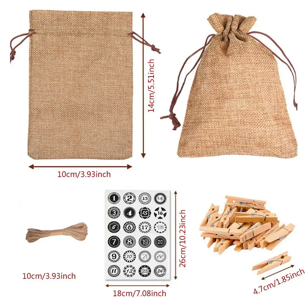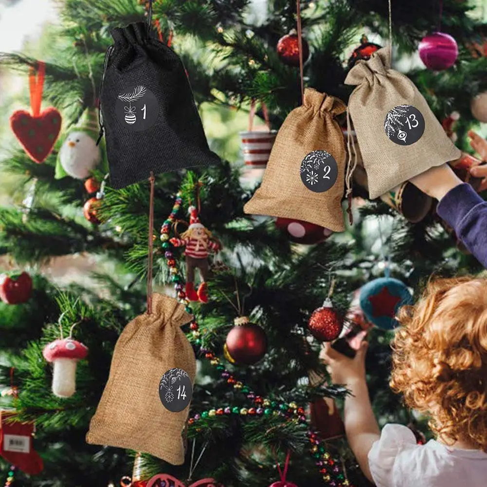 5. Сделайте Рождество более интересным: джутовый мешок Непрозрачный и запечатанный ниткой. Положите 24 джутовых мешка в различные маленькие подарки, и вы можете иметь небольшой сюрприз на Рождество каждый день.