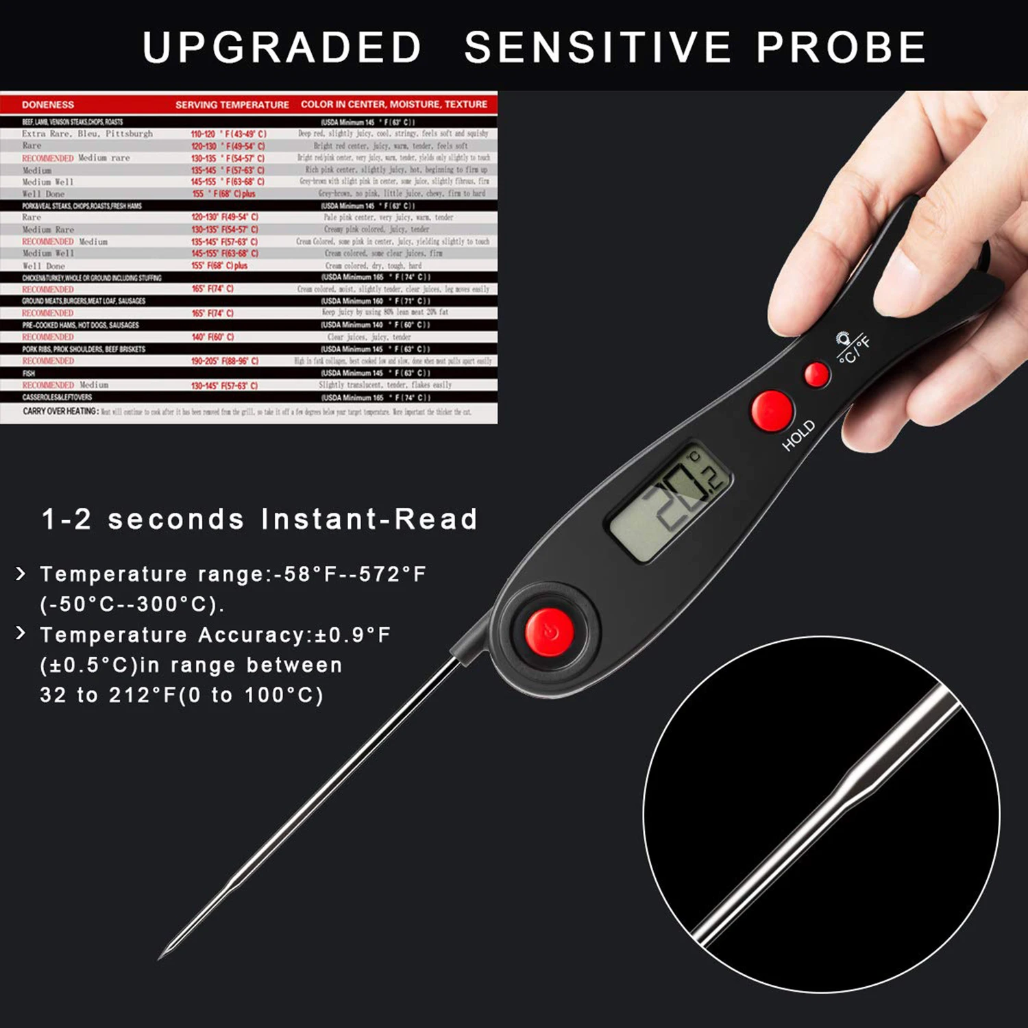 Цифровой Кухонный Термометр с ЖК-подсветкой и переключаемыми блоками, раскладной зонд открывается для быстрого и легкого чтения температуры. Попрощайтесь с готовой или подваренной едой и готовьте с уверенностью!