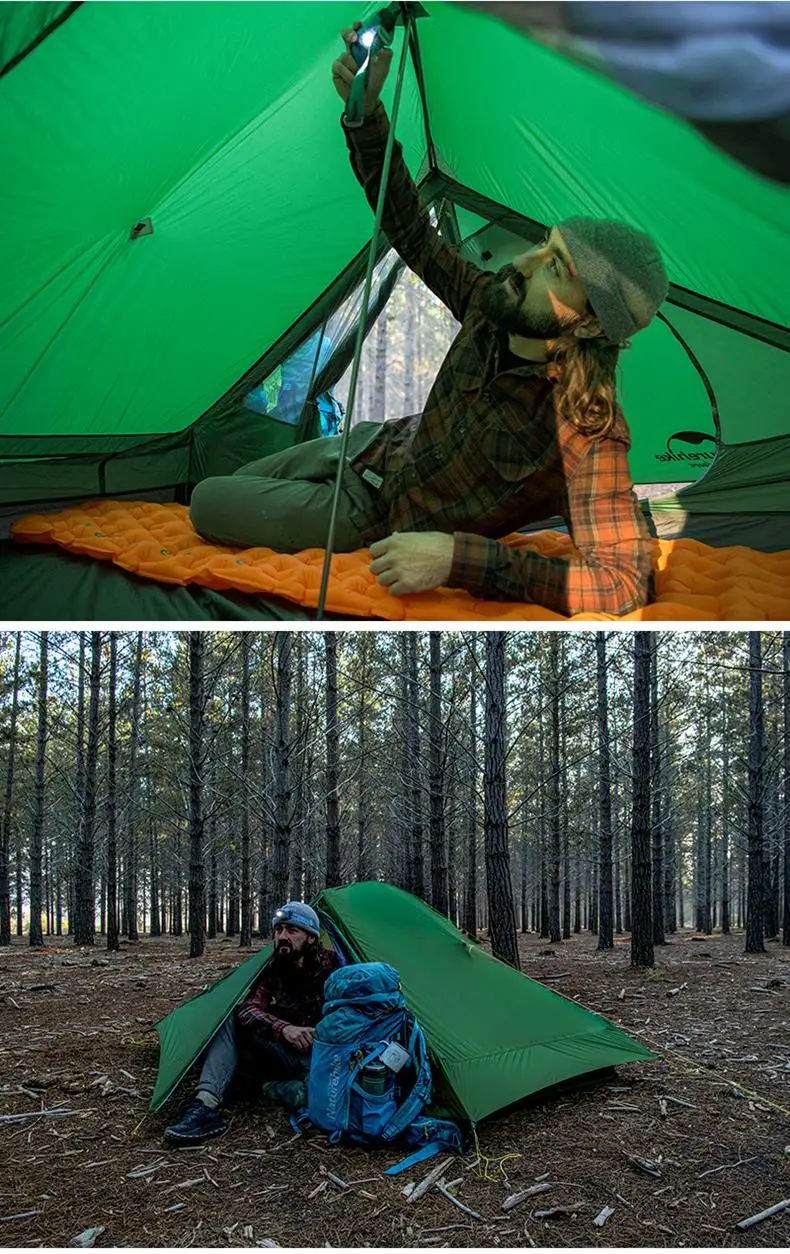 Бренд: NaturehikeВнешний счет: 20 одинарных силиконовых нейлоновых салфетокНижний счет: нейлоновая ткань в клетку 20DВес: около: 1400 г (не включает вес следа)Палатка: алюминиевый сплав 7001Размер: 210x135x105 см