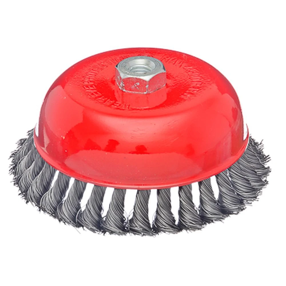Изготовлена из стальной крученой проволоки. Такая щетка имеет высокую износостойкость и применяется при грубых зачистных работах по металлическим поверхностям, удалении окалины, ржавчины и заусенцев, сглаживании сварных швов.