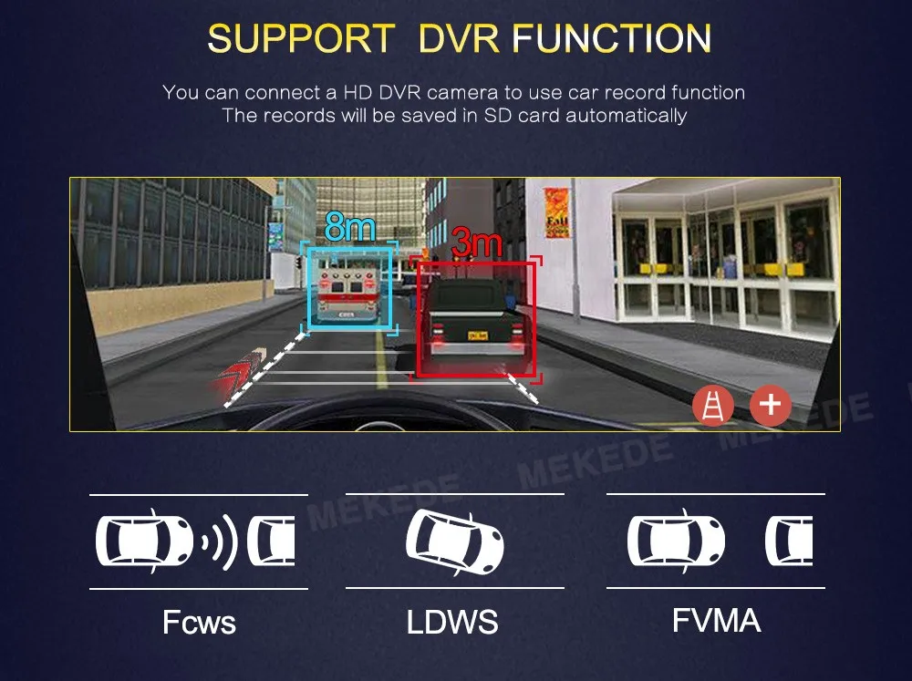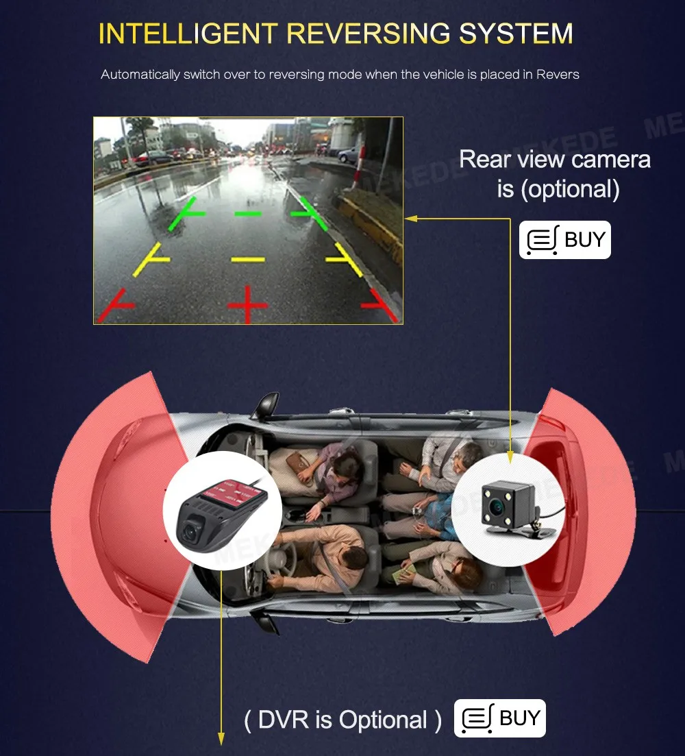 > Когда автомобиль находится на заднем ходу, Этот автомобильный DVD автоматически переключается на изображение камеры заднего вида с помощью линии парковки.