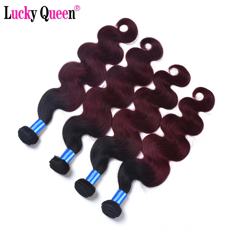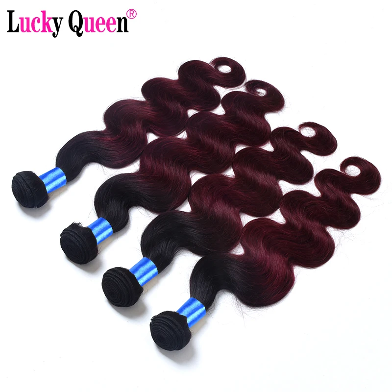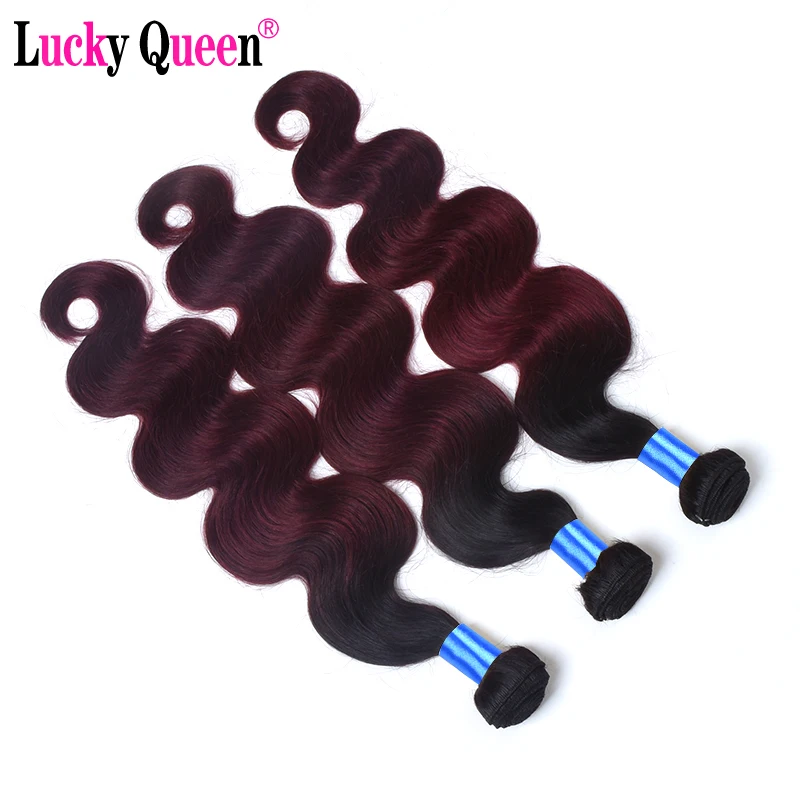 Lucky Queen Peruvian Body Wave Human Hair Extensions Remy Hair Weave Bundles Ombre 99J Colored Bundles Medium Ratio