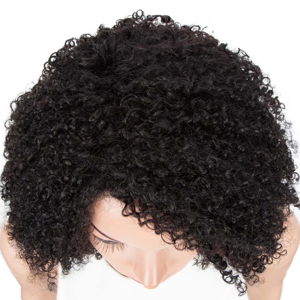 Афро кудрявые вьющиеся парики с челкой полностью машинное изготовление кожи