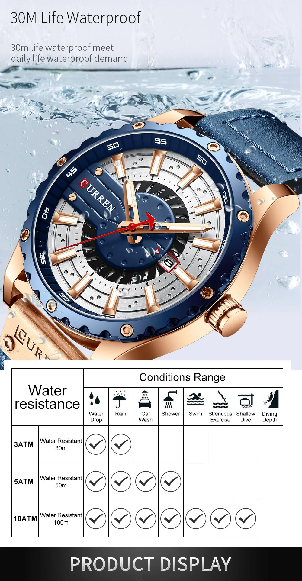 Curren Genuine Leather Mens Watches Top Brand Luxury business blue male wrist watches Minimalist wristwatch Reloj Hombre 2020
