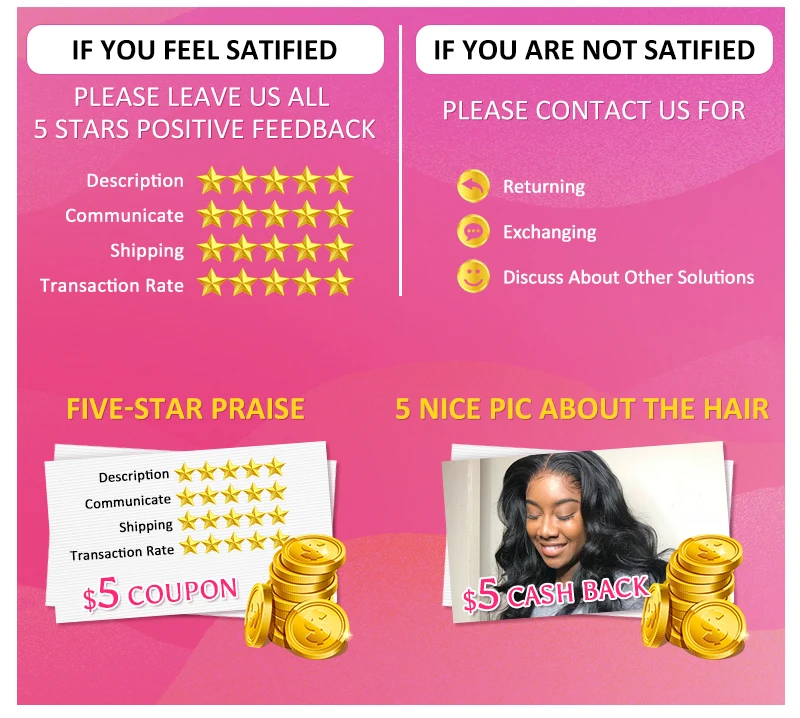 Мы будем признательны, если вы оставите нам все 5 звезд положительные отзывы с фотографиями. Ваш хороший отзыв-Отличная поддержка для наших трудолюбивых сотрудников. Если вы не удовлетворены, пожалуйста, не открывайте спор или не оставляйте негативные отзывы. Свяжитесь с нами вовремя, мы постараемся сделать все возможное, чтобы работать с вами вместе, чтобы решить любую проблему, пока вы не будете удовлетворены.