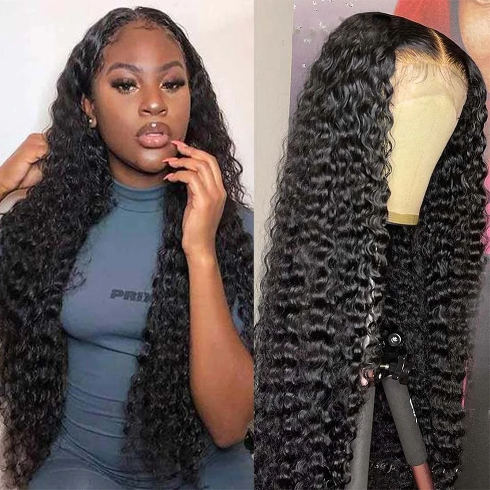 Закрытие глубокая волна волос парик человеческих волос парики Синтетические волосы на кружеве al 13x 6 Синтетические волосы на кружеве парик предварительно вы парики 13x4 глубокая волна фронтальной парик