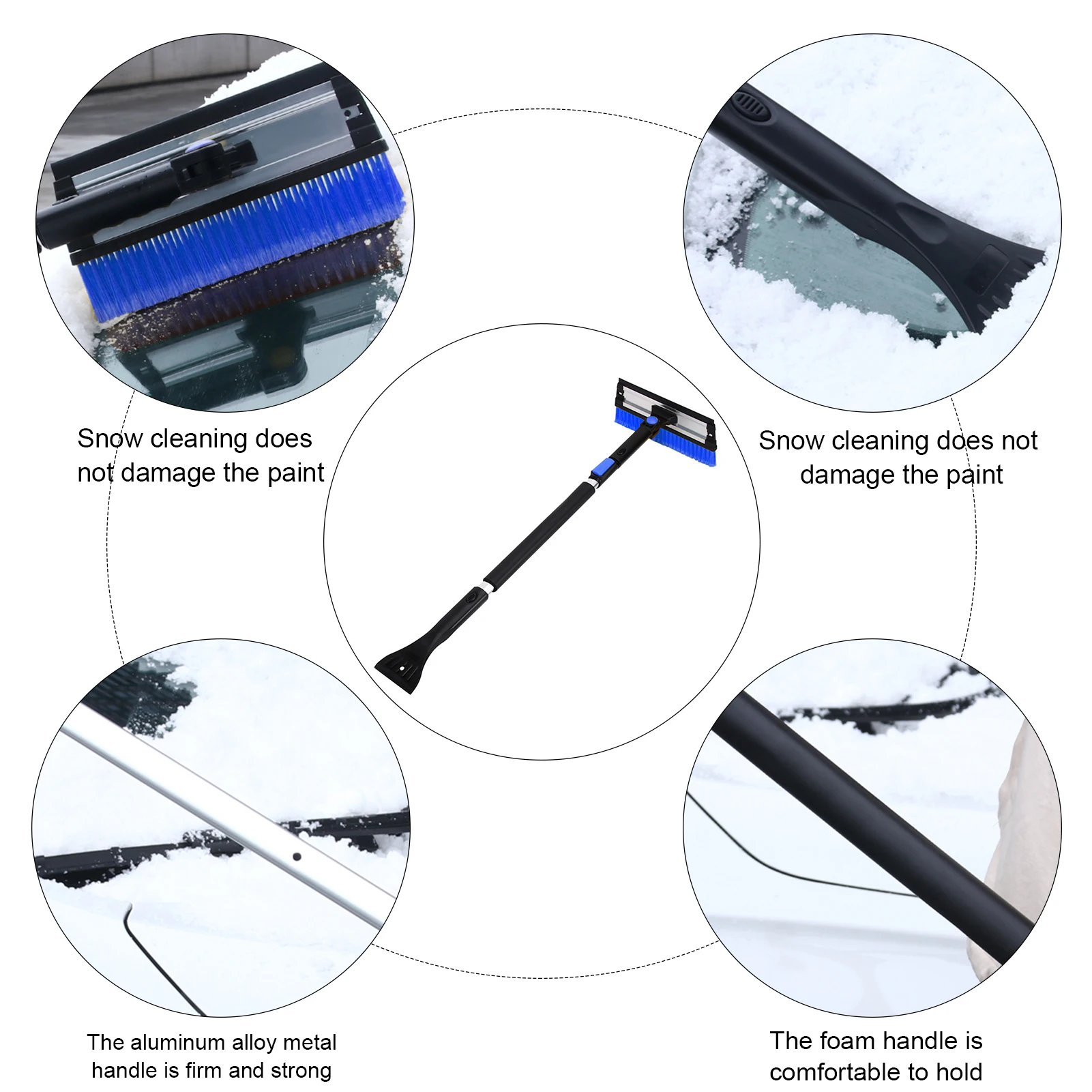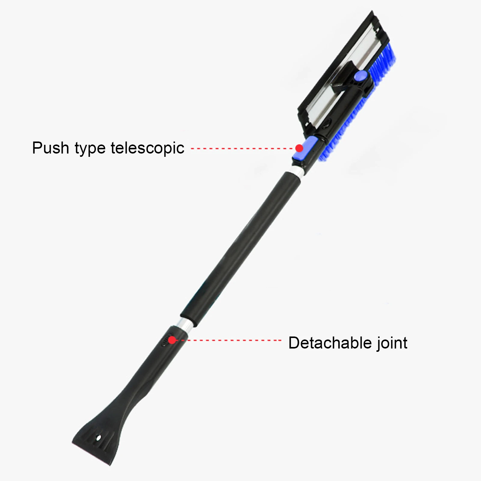 4. Регулируемая длина: длину телескопической ручки из алюминиевого сплава можно свободно регулировать, что удобно для очистки льда и снега. Подходит для всех видов транспортных средств. Удобно и практично комбинировать соскабливание и подметание.