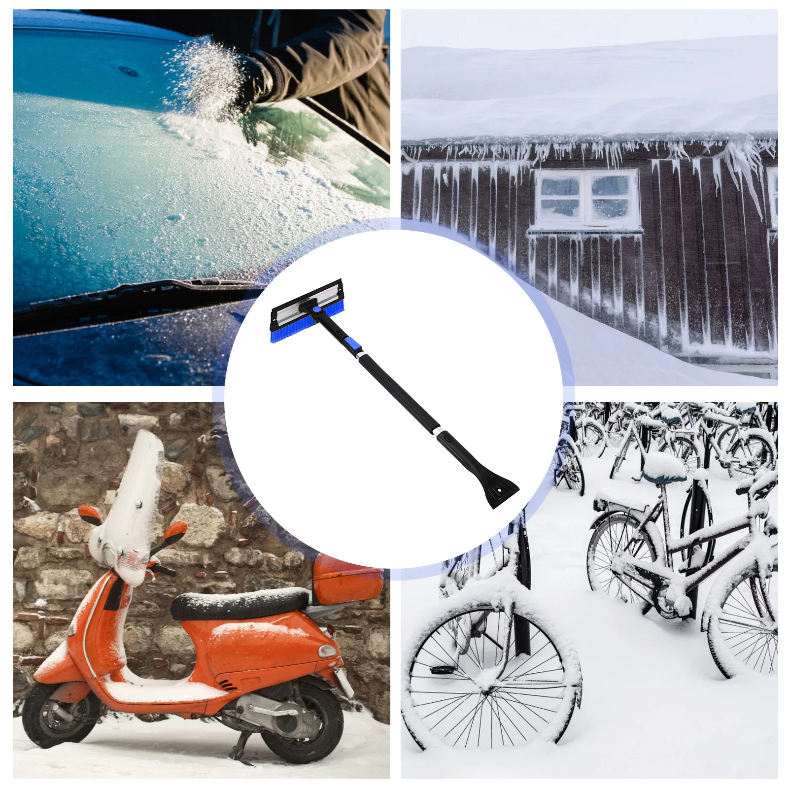 5. Широкое применение: помимо удаления снега и мороза с автомобилей, вы также можете использовать этот кисть от снега для машины для чистки электромобилей, велосипедов и заснеженных домов, стеклянных дверей и окон.