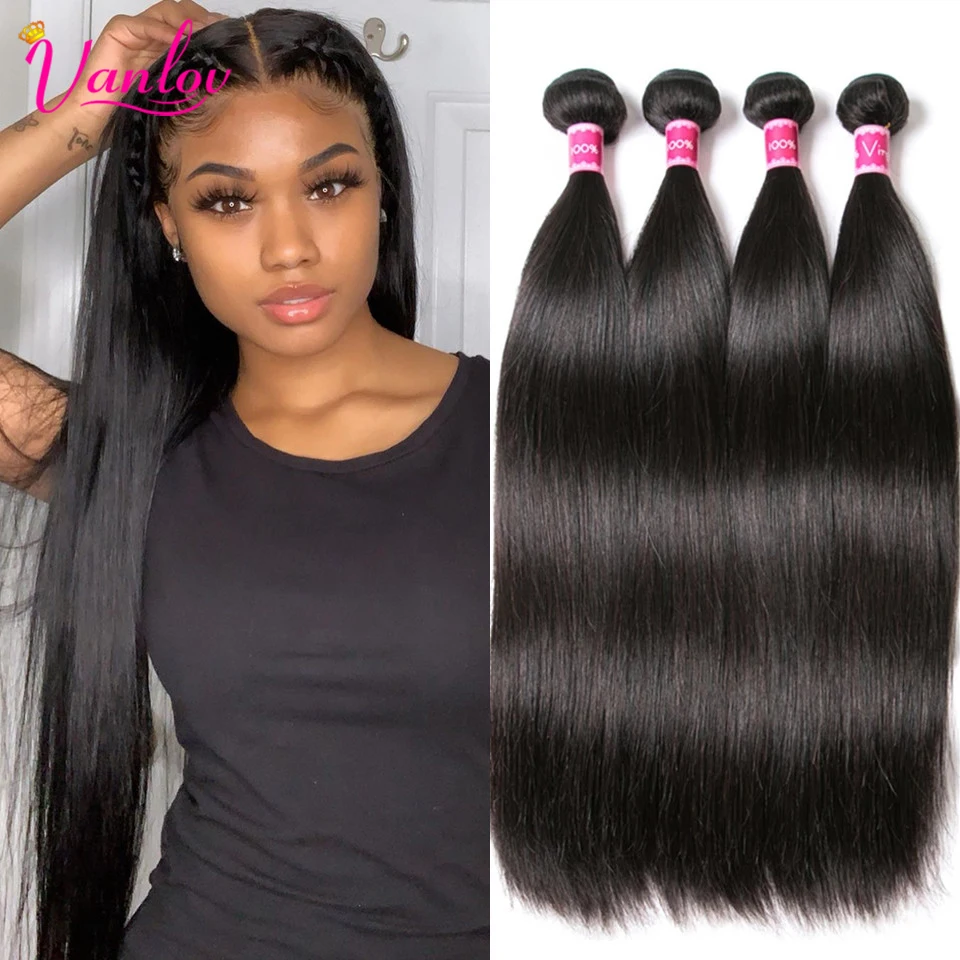 Vanlov прямые человеческие волосы, пряди, индийские волосы, плетение, пряди, натуральный черный и струйный Черный 1/3/4 шт/партия, 100% волосы Remy для наращивания