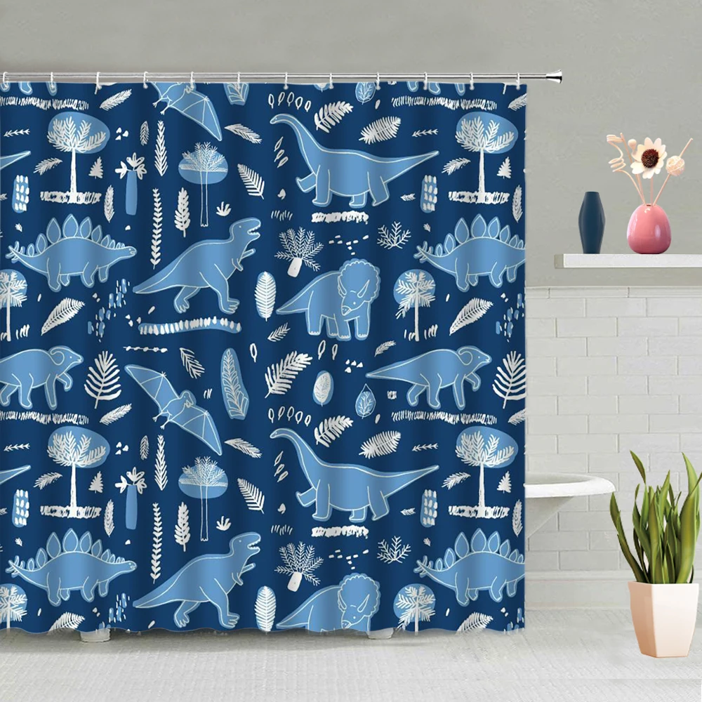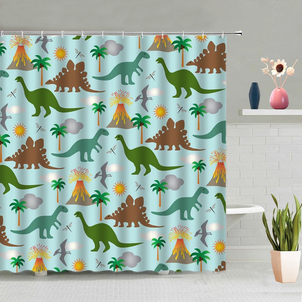 Детский душевой занавес с принтом динозавра, милый мультяшный животный детский набор аксессуаров для ванной комнаты, водонепроницаемый с крючком, домашний декор, дешево