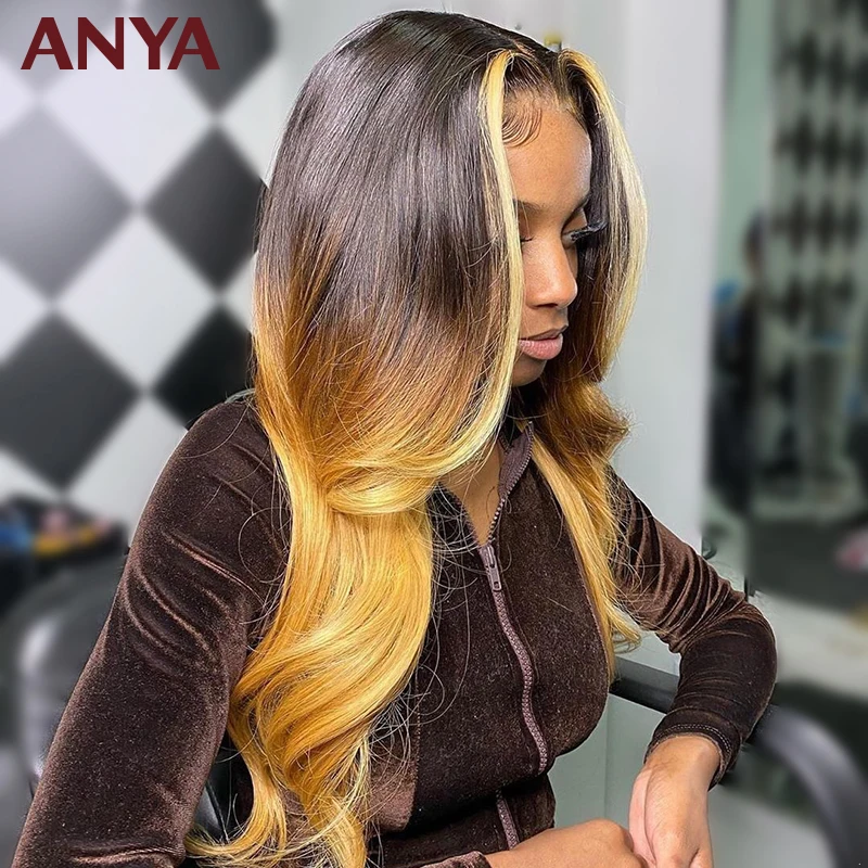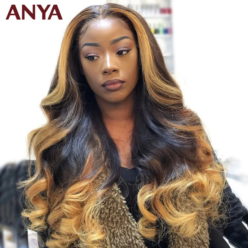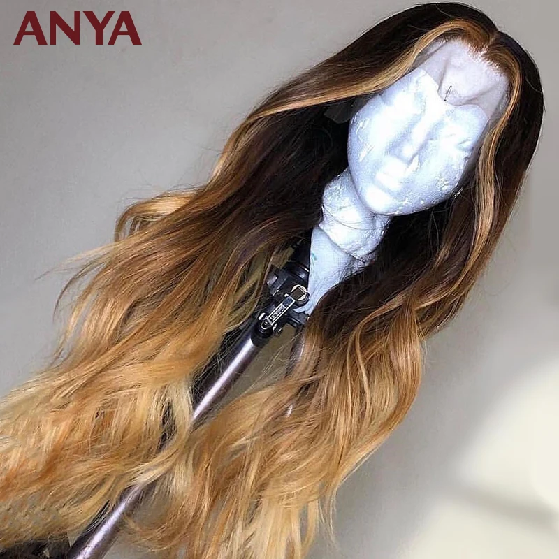 Аня волнистый черный коричневый блонд Омбре цвет человеческих волос парики