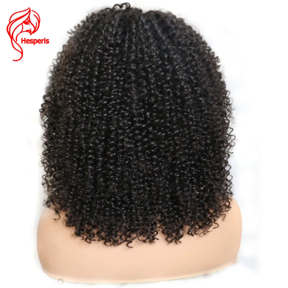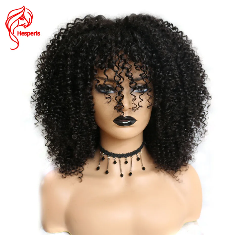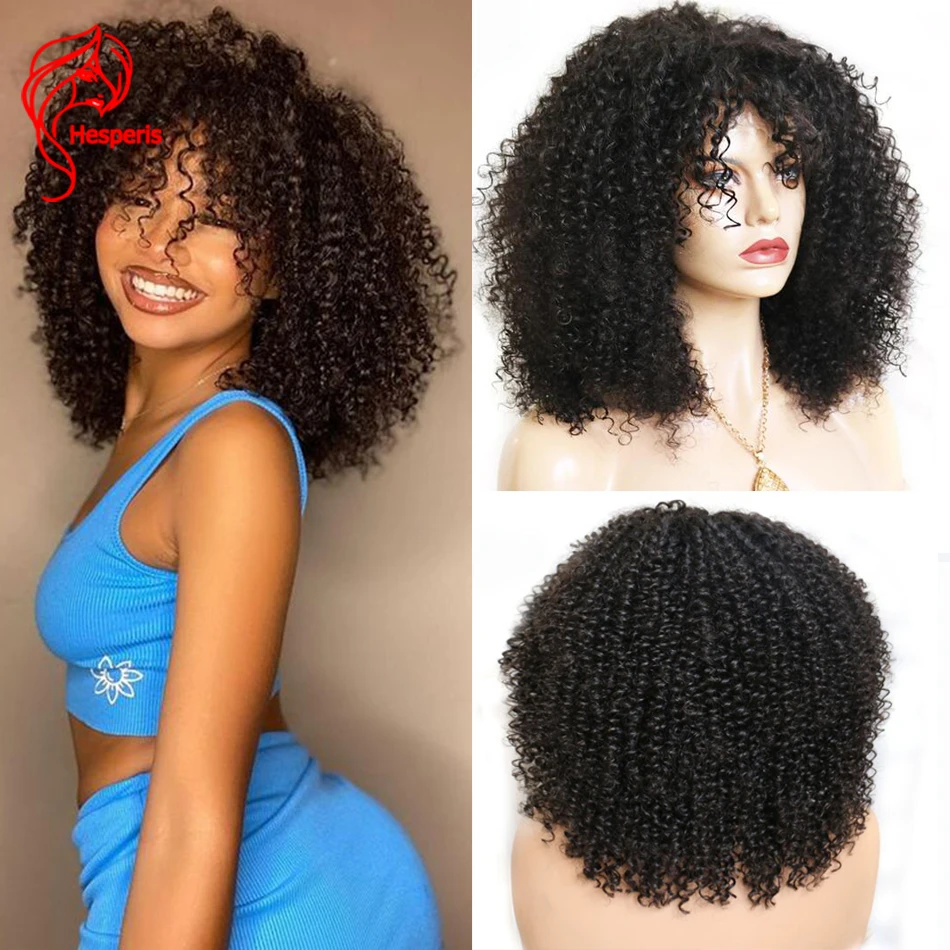 Hesperis 250 плотность афро, привлекательный локон человеческие волосы парики с челкой Remy бразильские волосы головы Топ Полная машина сделал Короткие вьющиеся парики боб