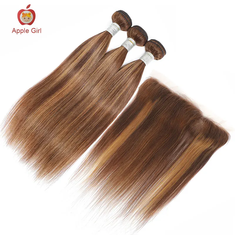 Выделите 2/3/4 пряди с закрытием бразильские натуральные кудрявые пучки волос пряди с фронтальной Цветной Applegirl прямые Волосы Remy