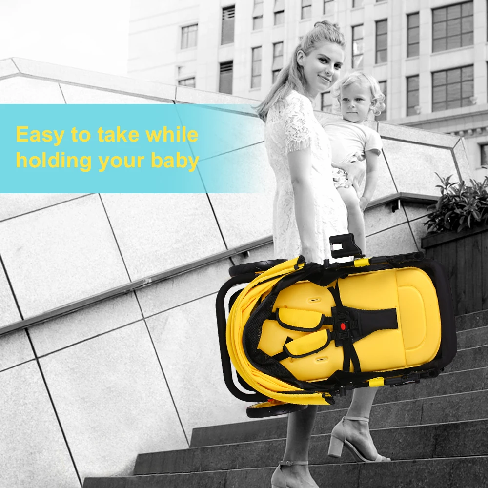 Эта компактная детская коляска универсальна. Разумная конструкция колес позволяет управлять плавно и бесшумно. Многопозиционное откидывающееся сиденье, Расширенный большой навес с сетчатым окном, регулируемое5-точечный страховочный жгут. Большое пространство для малыша, чтобы оставаться комфортно и без ограничений. Такой хороший спутник растет вместе с вашим ребенком! Особенности: [Безопасный и надежный] Встроенные колеса с защитой от пружины амортизатора для амортизации. Регулируемый 5-точечный страховочный жгут. Запираемая конструкция задних колес. Толстая Опора колодки защищает позвоночник. [Разумный дизайн колес] передние колеса с поворотом на 360 ° позволяют управлять плавно и плавно. Различные размеры конструкции передних и задних колес для стабильного нажима на неровную поверхность. [Регулируемый дизайн] многопозиционное откидывающееся сиденье позволяет ребенку комфортно и отвечает различным требованиям, таким как осмотр достопримечательностей, питание, сон и многое другое. Расширенный большой балдахин позволяетРегулировка в соответствии с различными погодными условиями. Подножку можно перемещать в разные положения. [Дизайн для родителей] Сетчатое окно за балдахином позволяет удобно видеть вашего ребенка. Съемный поднос с держателем Избегайте часто меняющихся обеденных стульев. Съемный подлокотникПозволяет легко установить или удерживать ребенка. Подвижный держатель для бутылок, чтобы держать чашку. [Дизайн быстрого складывания] Легкий и компактный. Отлично подойдет для однодневных поездок или длительных путешествий. [Большое пространство] большое пространство для ребенка, чтобы оставаться с комфортом без ограничений. Большая корзина для хранения Вмещает много видов вещей. Характеристики: Цвет: желтый Материал: стальная труба Размер в разложенном виде: 53*75*92 см/21,0*30,0*36,2 дюйма Размер сгиба: 53*30*80 см/21,0*11,8 * 31.5in Вес изделия: 6 кг/13,2 фунта Посылка: 75*46*21 см/29,5*18,1 * 8.3in Вес посылка: 7 кг/15,4 фунта Комплектация: 1 * детская коляска 1 * нагрудник 1 * Летний спальный коврик 1 * москитная сетка 1 * держатель для бутылки 1 * лоток