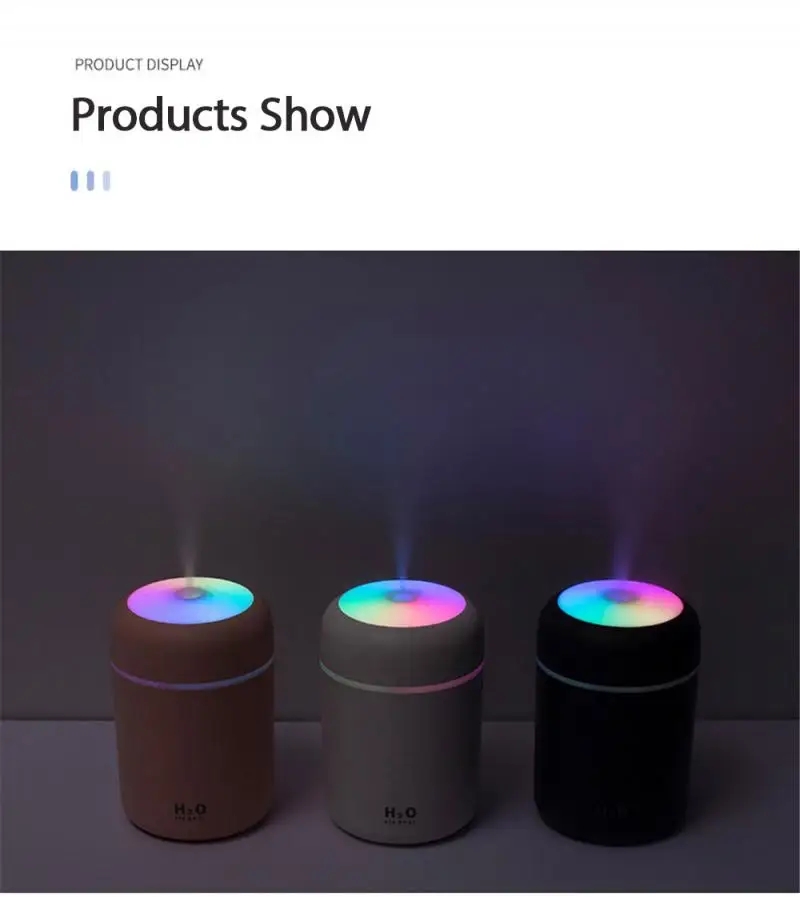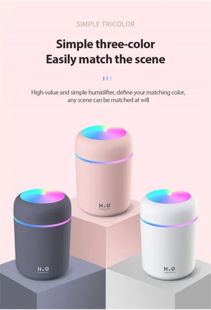 Mini Humidifier Oil Diffuser. 300ml water tank. With Colorful Night Light.