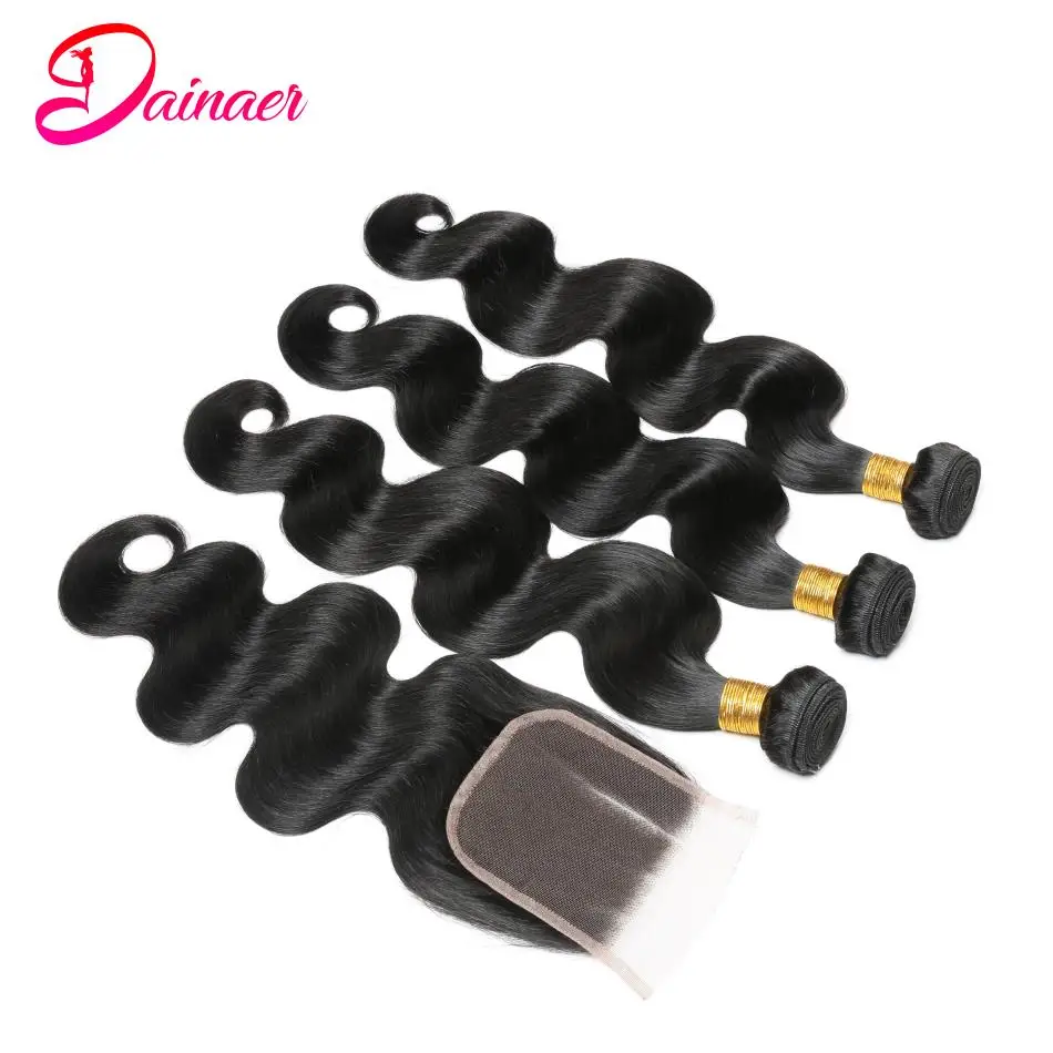 Бразильские человеческие волосы волнистые пряди с закрытием 4x 4 Remy волосы для наращивания цвета 1B волнистые человеческие волосы пряди с закрытием