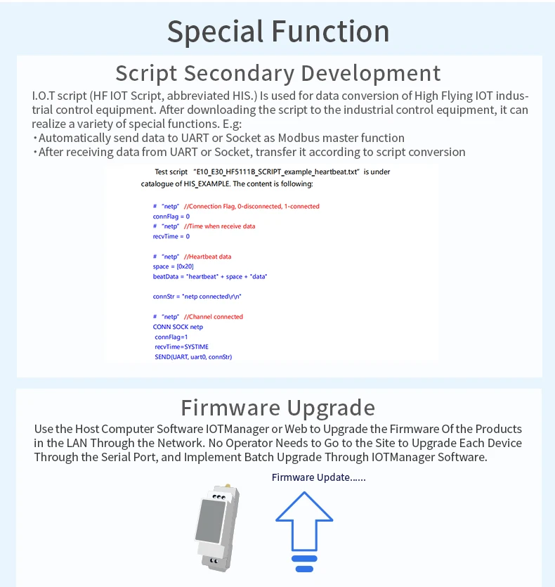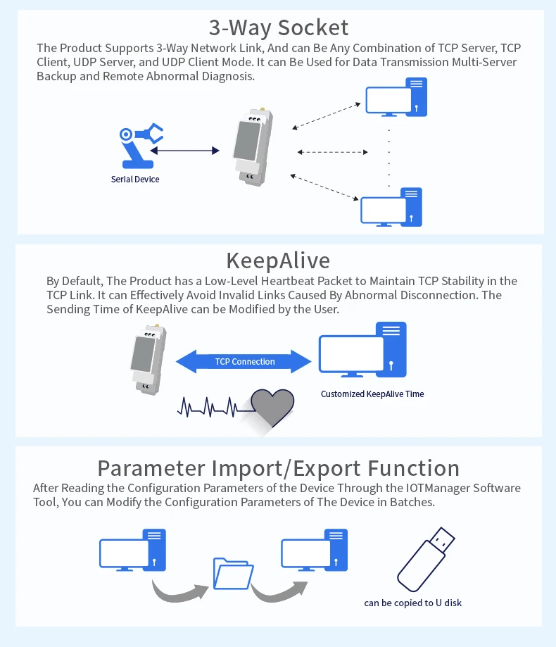 Поддержка нескольких режимов работы: прозрачный сетевой режим передачи, режим HTTP, MQTT, WebSocket