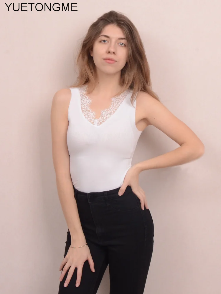 Женская майка с v-образным вырезом, топы, футболки, кружевные украшения