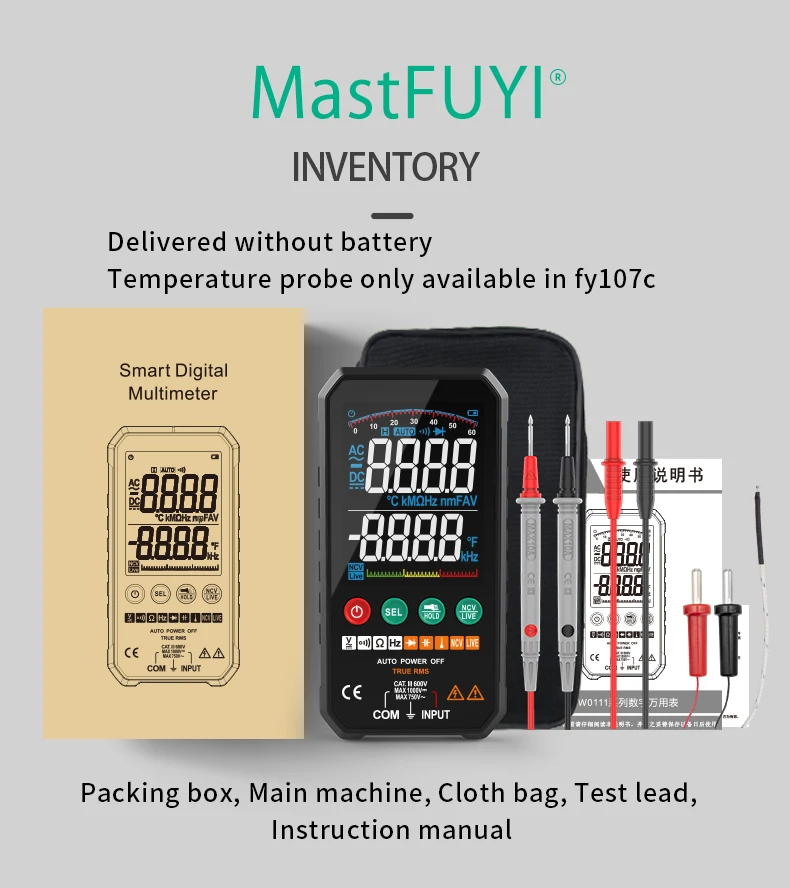 1. Напряжение переменного тока (ACV):10 мВ ~ 750 В ±(1.2% + 3)
