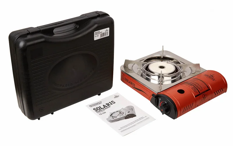 Плита оборудована системой пьезоэлектрического розжига горелки и блоком управления подачей газа, а на время хранения и транспортировки размещается в пластиковом кейсе.