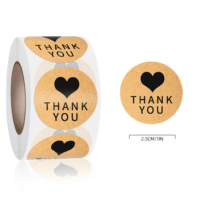 500 шт/рулон круглая крафт-бумага Спасибо наклейки упаковка для ручной работы конверт этикетки для печати канцелярские наклейки сердце спасибо покупки