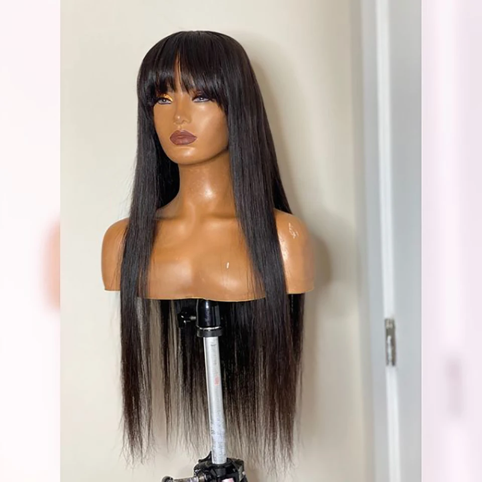 180 плотность перуанские 13x4 кружева передние человеческие волосы парики с челкой бесклеевая кружева передняя Аль бахрома парики Remy волосы для чернокожих женщин